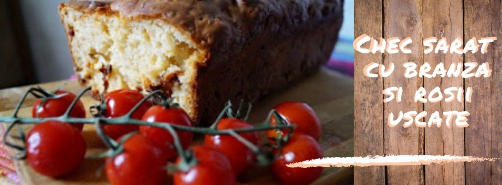 Am gasit ratacit un borcan cu rosii uscate si deoarece in general le folosesc in sezonul rece la sandwichuri, am zis sa il termin pentru a nu se strica pana atunci. Prima idee care mi-a venit a fost sa fac un chec sarat cu branza in care sa pun si rosiile mele uscate. E o idee buna, mai ales ca astazi este ziua in care nu mananc carne si promovez proiectul „Miercurea fara carne”.