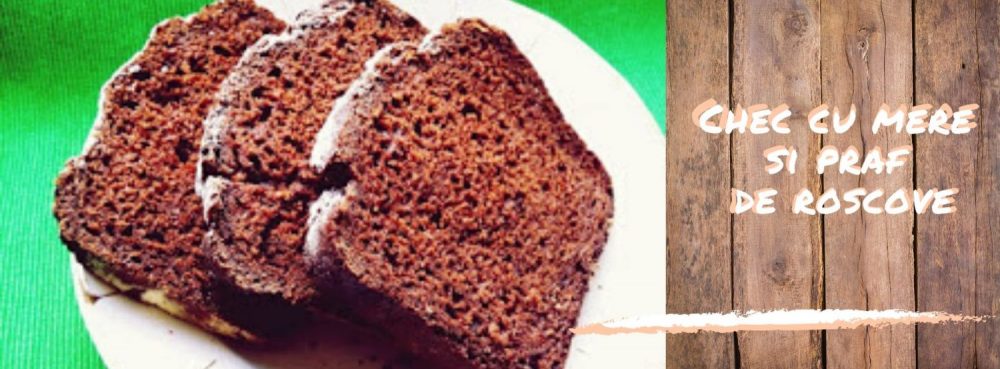 Merele le-am curatat, pasat cu blenderul si in acest piure am adaugat o lingurita de bicarbonat. Ouale le-am mixat intregi cu zaharul si am adaugat apoi treptat lingurile cu ulei. Ar fi trebuit sa fac checul indulcit doar cu fructoza din mere si cu cea cu praful de roscove, dar pentru a fi mai gustos am adaugat si trei linguri de zahar(poti incerca sa suplinesti zaharul crescand cantitatea de praf de roscove).