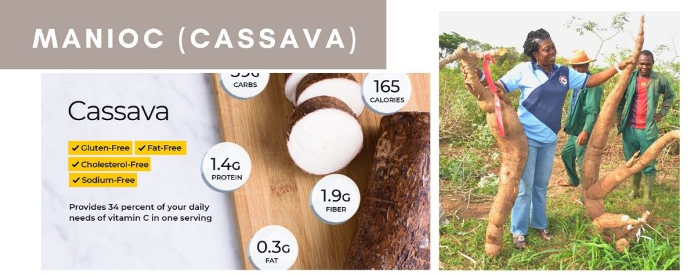 Se consuma exclusiv dupa preparare, deoarece contine o substanta toxica care dispare la temperaturi ridicate. Metodele traditionale implica fierberea, prajirea, macinarea ca faina si fermentarea. In unele regiuni, frunzele maniocului sunt recoltate pentru consumul uman si animal, oferind un supliment de proteine dietei. Planta are potentialul de a produce si depozita mai multi carbohidrati decat orice alta cultura majora de tuberculi sau cereale.