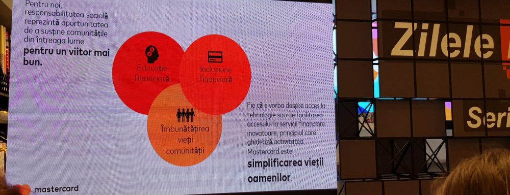 Purtatoarea de cuvant al brandului Mastercard a fost Diana Tanase, Marketing Manager si a vorbit in general despre platforma “Construieste un viitor mai bun cu Mastercard”. Cu ajutorul sau sr doreste declansarea unei schimbari in bine in comunitatea romaneasca, lasarea unei amprente asupra vietii oamenilor. Un viitor mai bun, dar nu numai printr-un ajutor financiar, ci si prin aducerea de servicii, produse pentru imbunatatirea vietii. Atunci cand suportul financiar nu poate fi la inaltimea asteptarilor, produsele si serviciile pot face diferenta, aducand beneficii care sa simplifice viata.